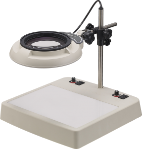 The ENVL-CL model is a product with two lightings: epi-illumination around the lens and transillumination on the box. The two lightings can be turned on/off individually. The newly designed, LED-exclusive slim head uses a board-mounted LED with high color rendering (Ra≧90) and heat generation. A flat, diffuser and protector will reduce the work and the light source as well as the glare unique to LEDs.